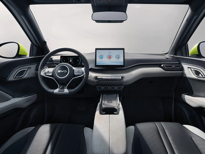 Binnenin vind je een slimme, moderne cabine met een 10,1-inch draaibaar touchscreen, Apple CarPlay, Android Auto en spraakbediening via “Hi BYD” voor handsfree gemak.