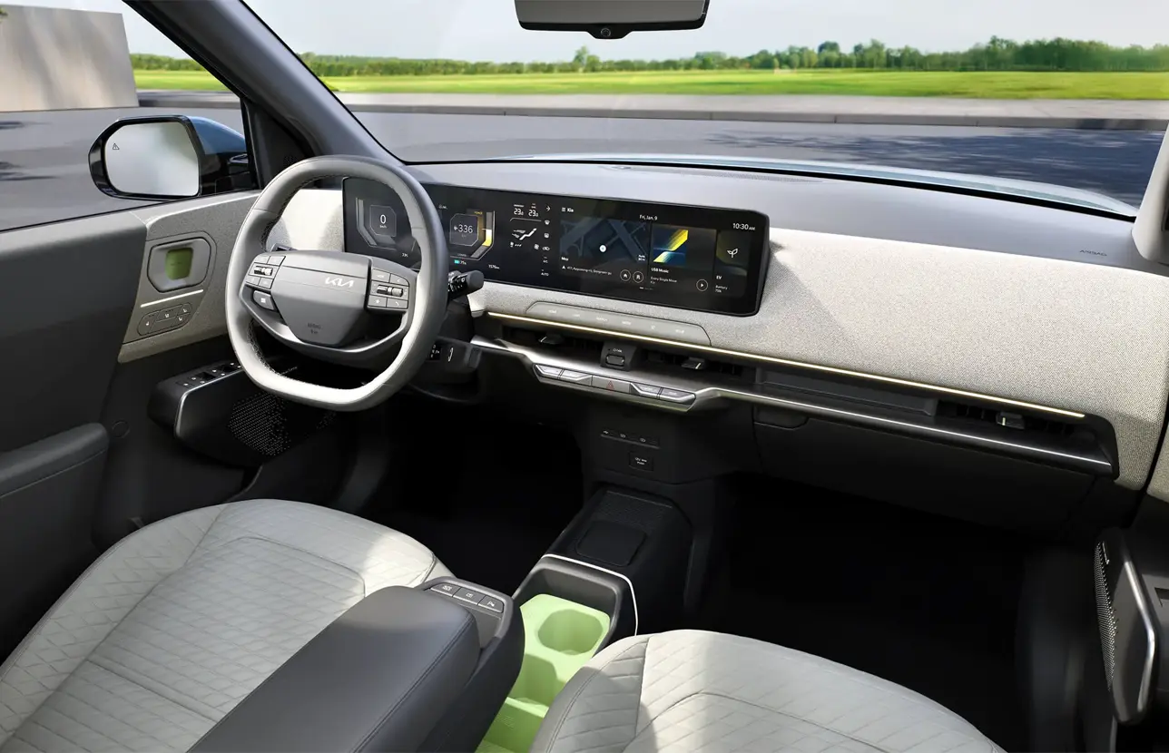 Binnenin de EV2 draait alles om ruimte, gebruiksgemak en slimme technologie. De vlakke vloer, digitale cockpit en handige opbergvakken maken het interieur zowel functioneel als comfortabel. De bagageruimte tot 418 liter is ruim voor zijn klasse, terwijl het infotainmentsysteem zorgt voor een naadloze connectie met jouw wereld. Alles wat jij nodig hebt, binnen handbereik.